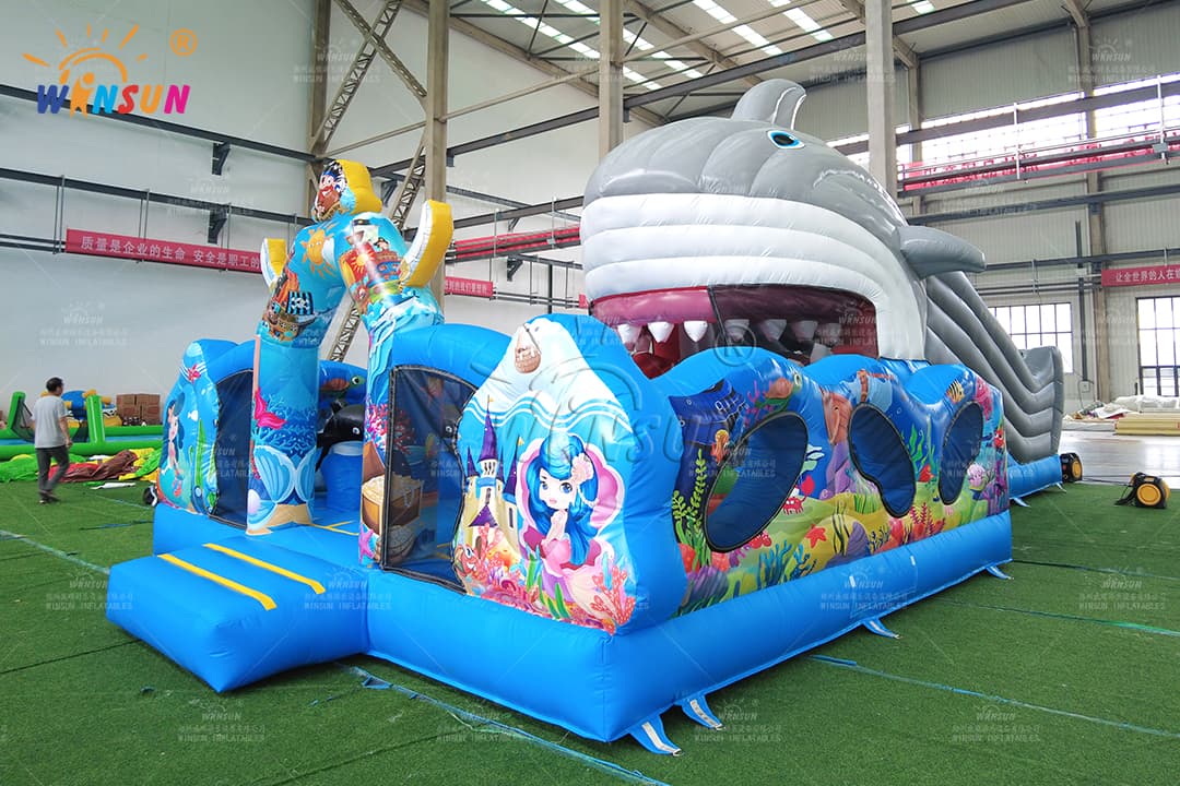 Under The Sea Inflatable Playground with Moving Shark Mouth