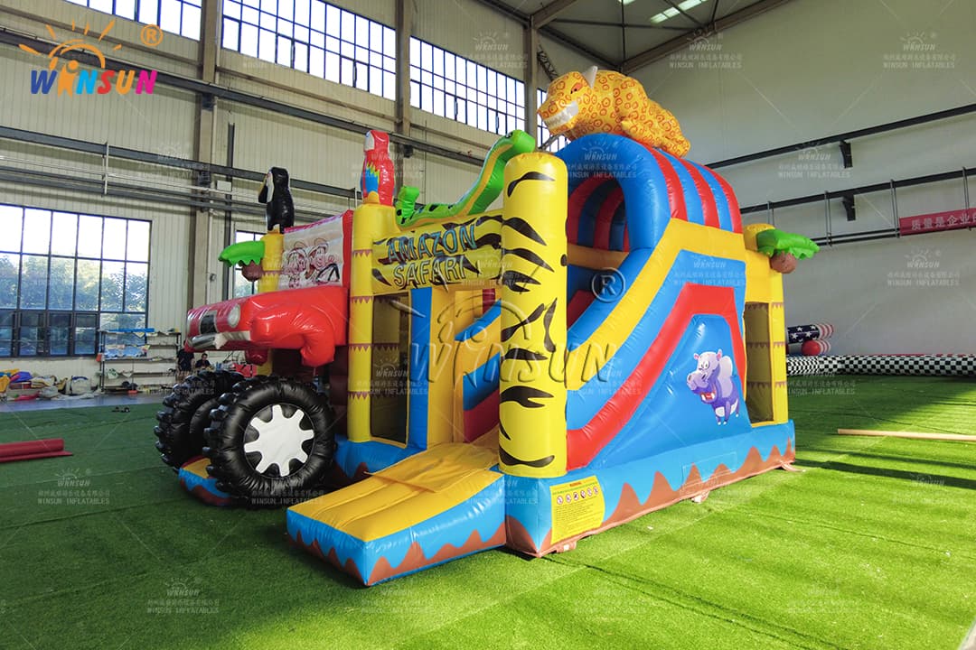 Drive-through Safari Inflatable Bounce House with Slide
