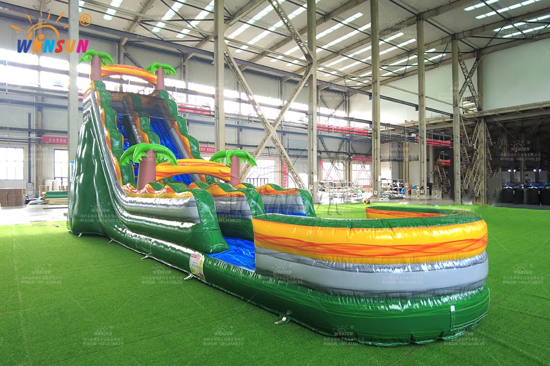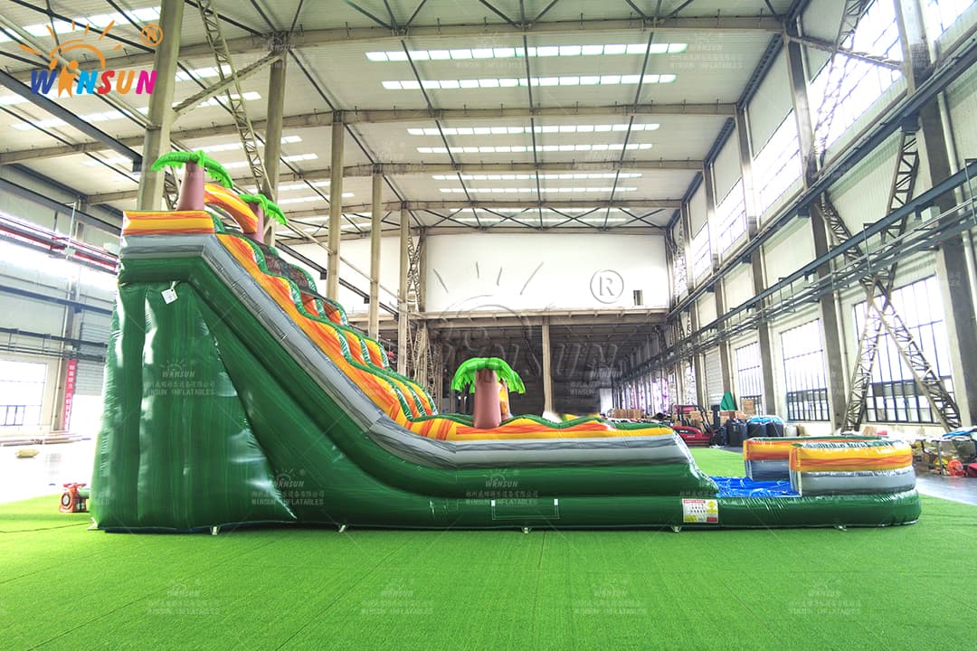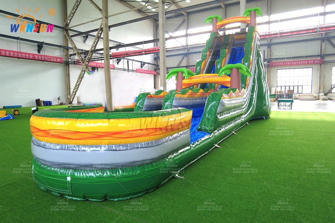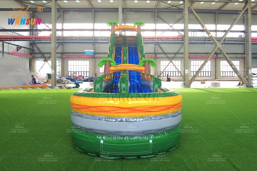 Commercial Giant Green Marble Water Slide – Palm Tree Design with Splash Pool