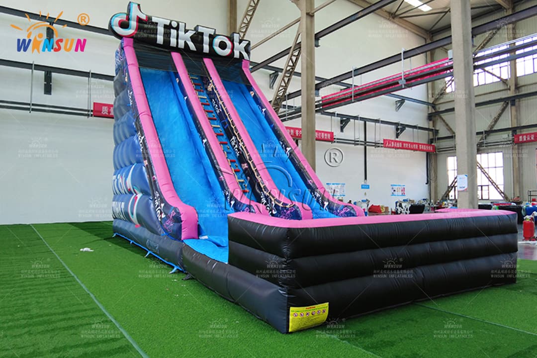 Commercial Inflatable Water Slide Unit with Center Climb Dual Slides