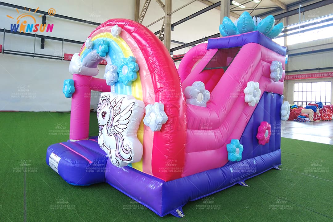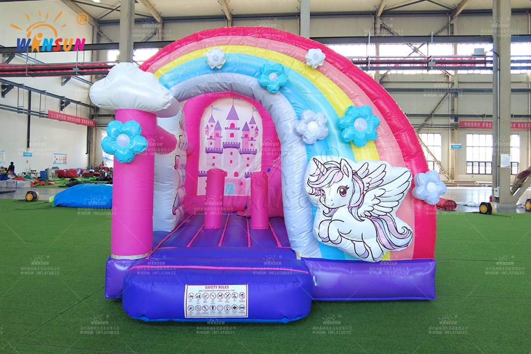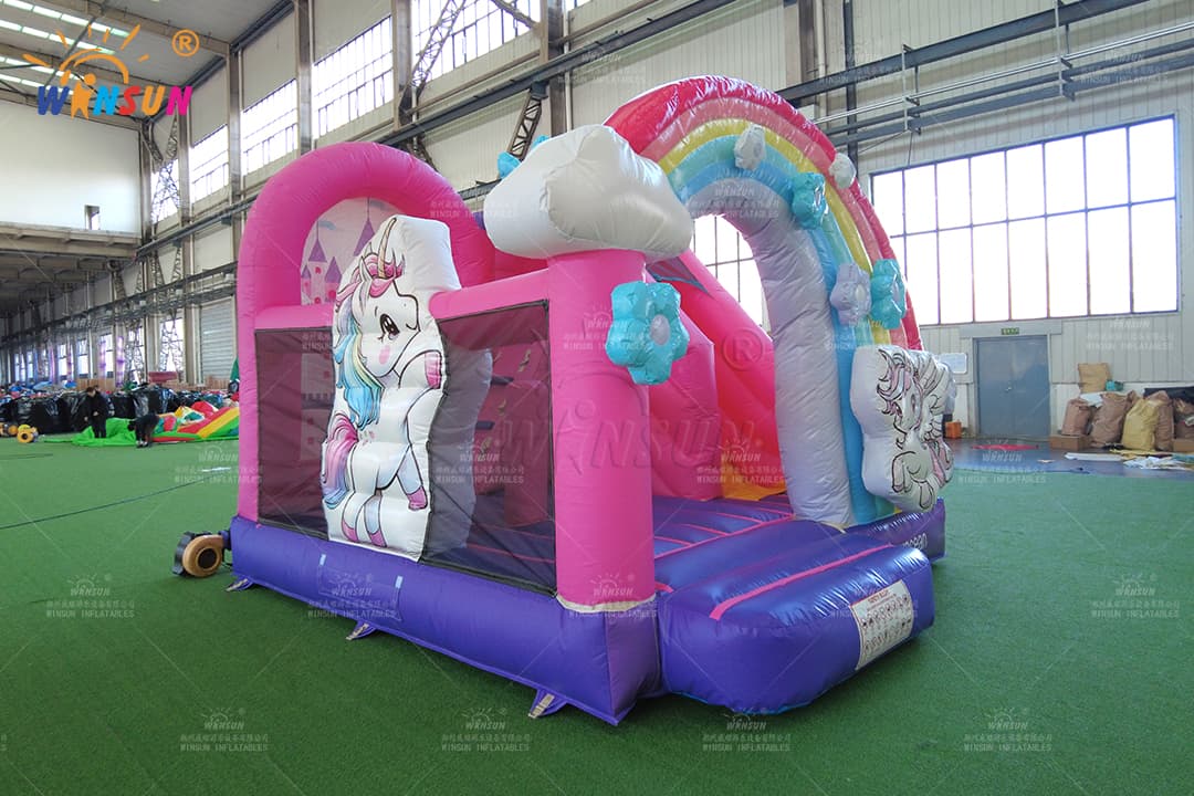 Durable Tarpaulin Unicorn Bounce House Combo with Rainbow Entrance